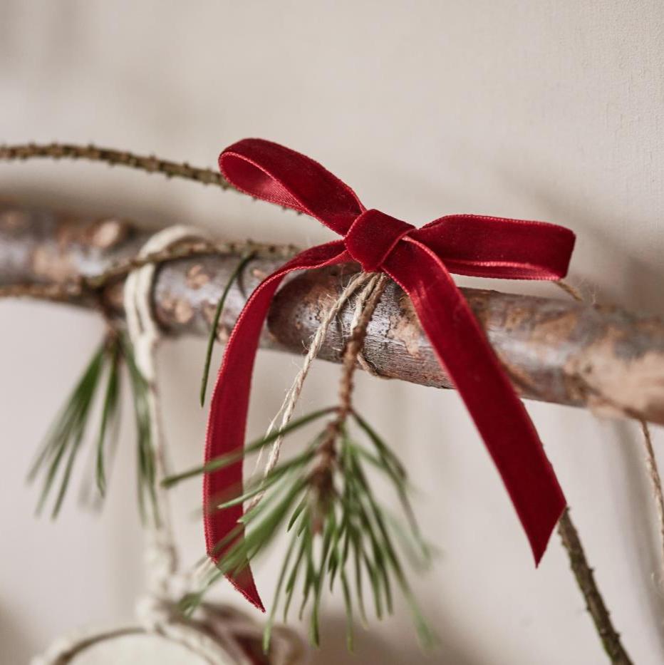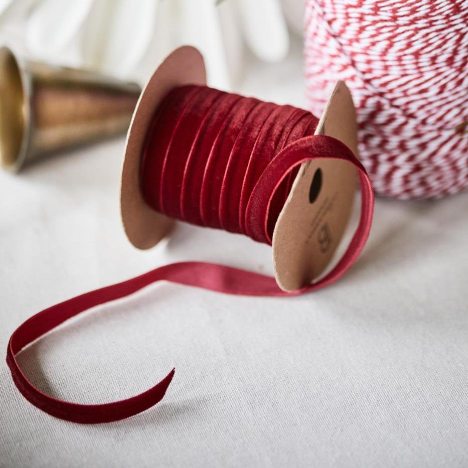 10m Spool Velvet Ribbon in Bordeaux. Decorate your gifts in style, or tie bows onto baubles or other decorations with this festive ribbon.