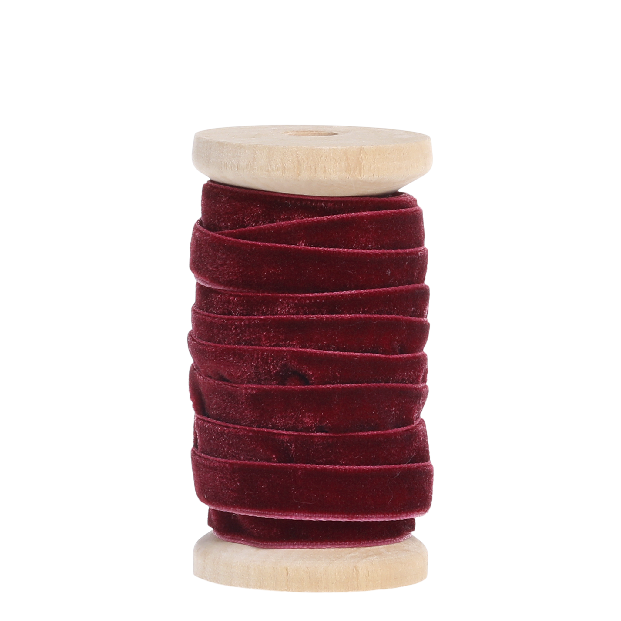 5m Spool Narrow Velvet Ribbon in Antique Cherry. Decorate your gifts in style, or tie bows onto baubles or other decorations with this festive ribbon.