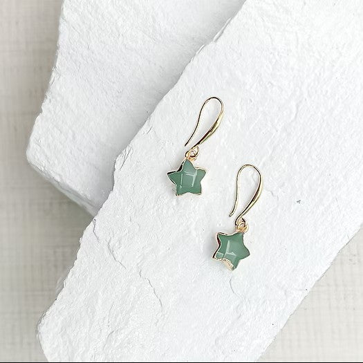 Aventurine Star Gold Plated Earrings
