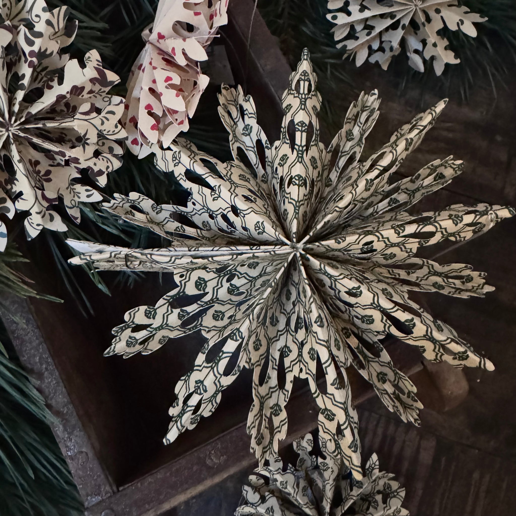 Assorted Hanging Paper Snowflake Decorations. Sold individually and available in a choice of styles and patterns