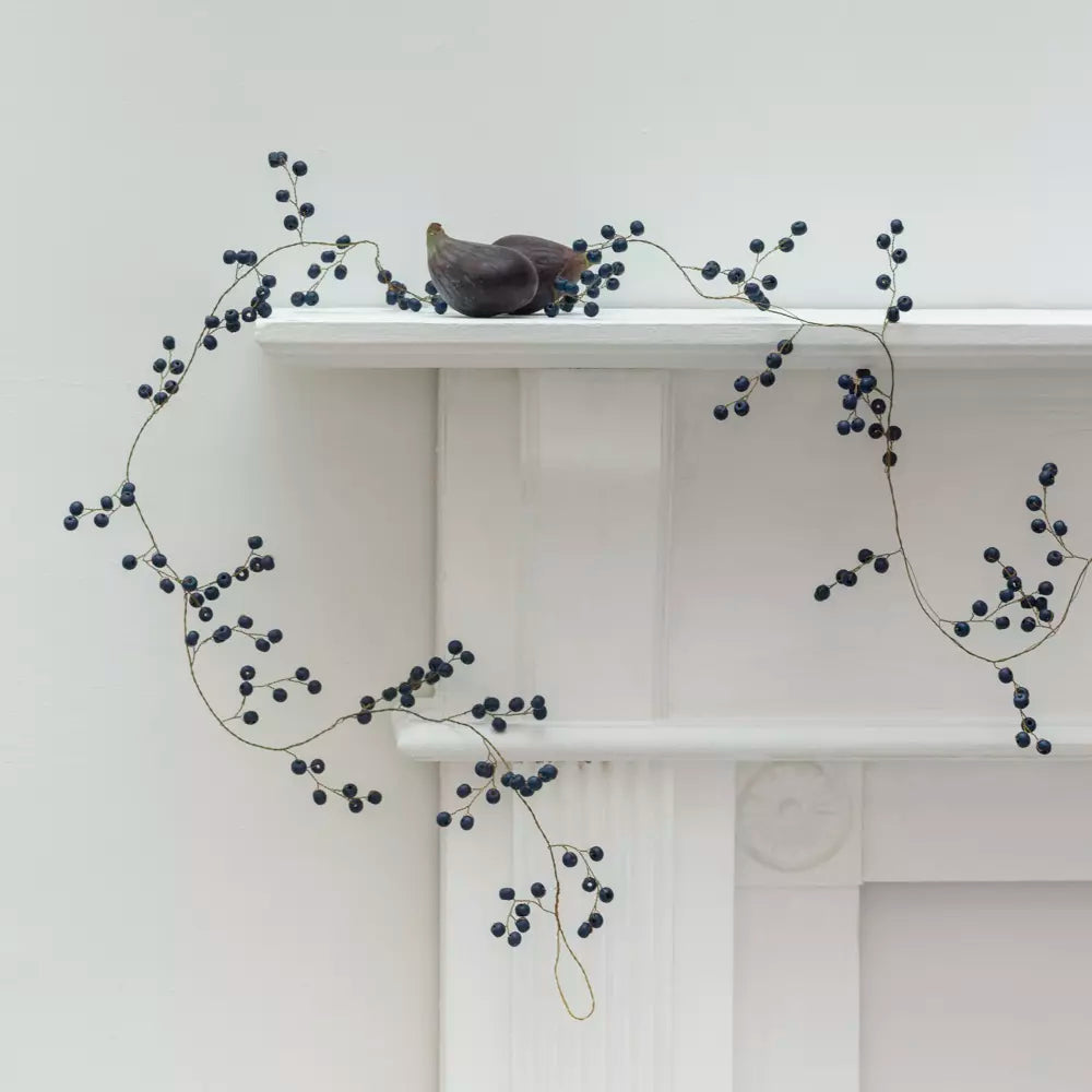 Blueberry Garland. A Christmas classic, this Blue Berry Wooden Garland is a traditional yet festive accessory for dressing your home this winter. Ideal for displaying along a mantlepiece above a roaring log fire, this dainty garland would look stunning teamed with some foliage to create a stunning feature to showcase in your home, year after year.