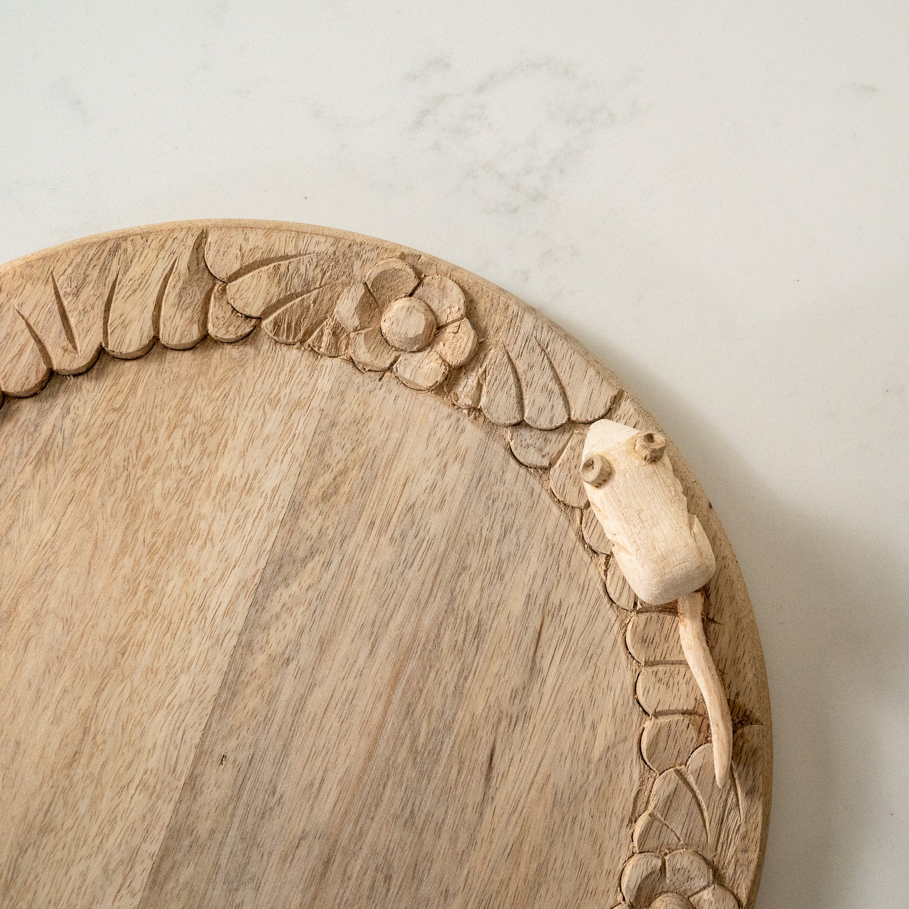 Carved Board with Mouse. These round boards are beautifully hand carved complete with an adorable mouse. Perfect to use as a cheese board, pizza or serving boards. Or as a centrepiece at the dinner table.
