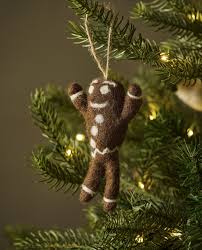 Felt Gingerbread Man. These Gingerbread Man decorations bring instant festive cheer. Ideal for styling a Christmas tree with rustic, Scandinavian-inspired charm, these happy gingerbread men have white ‘icing’ detailing and also work well hanging from door handles and cupboard door knobs to bring festive vibes to any room. Pair them with other felt decorations to complete the look.