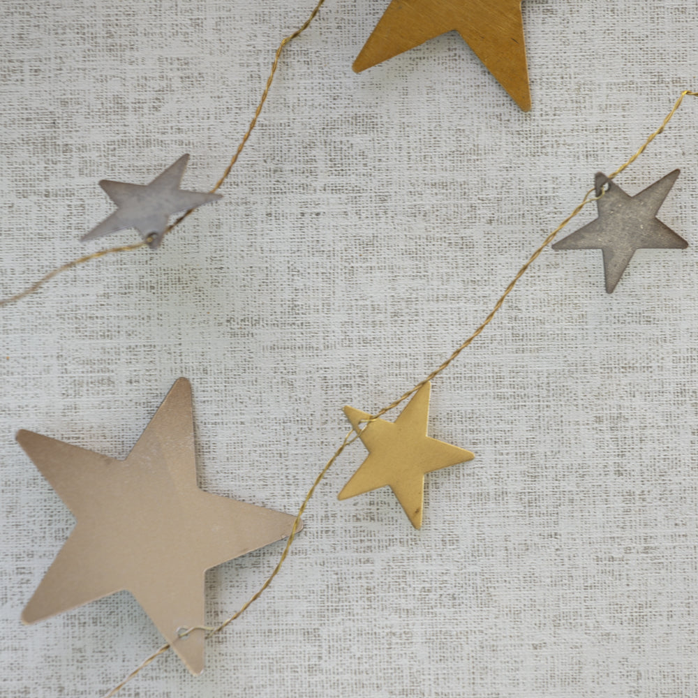 Gold and Silver Star Garland. It’s all in the detail when it comes to embellishing your interior, so add the finishing touch to your room with our cute gold and silver star garland in order to brighten up the space, whether it’s just for Christmas or all year round! Hang across an exposed beam, from a wall or intertwine into one of our festive garlands to create a striking centerpiece which includes a touch of magic!