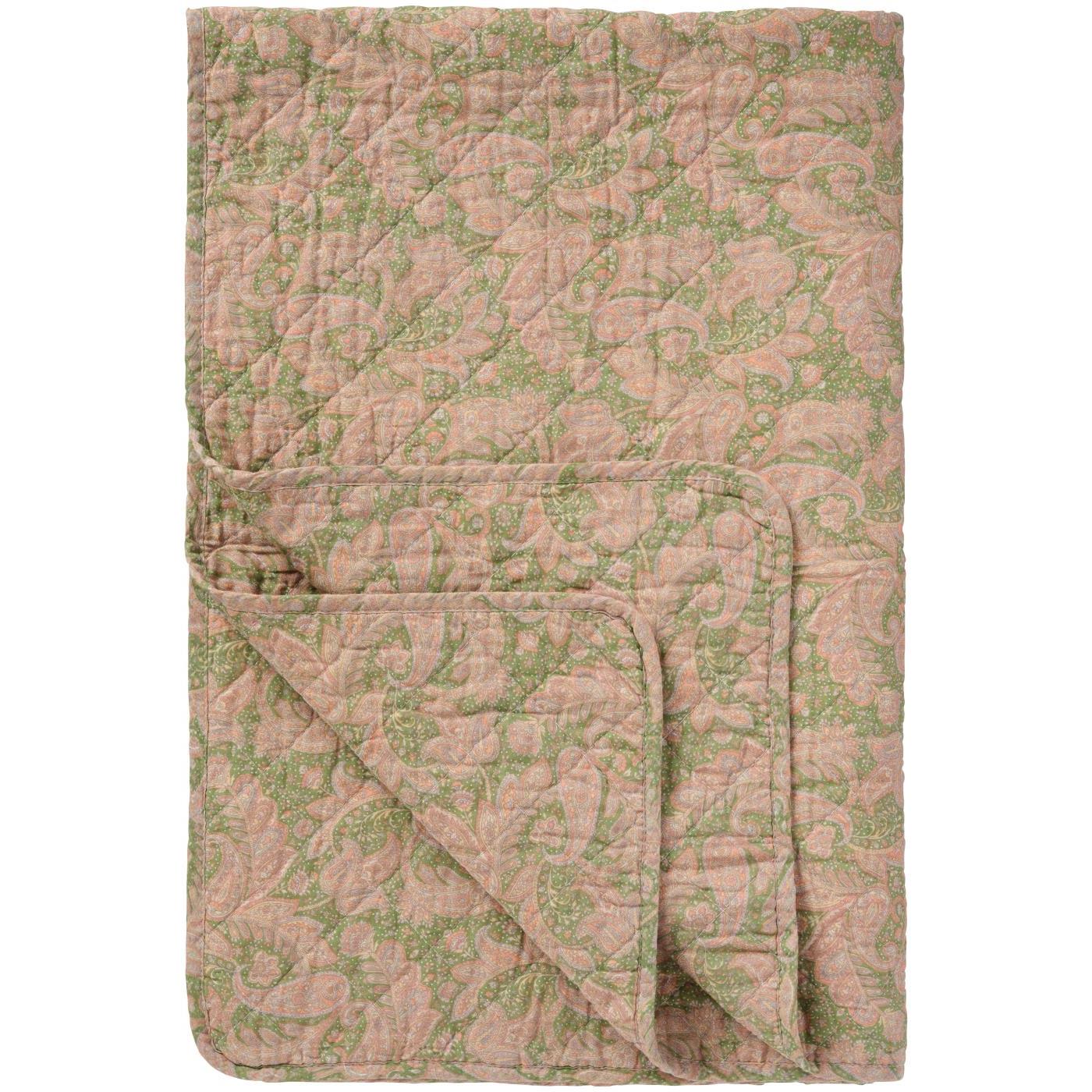Pink and Green Paisley Quilt. Cotton quilt in soft pink and green paisley design. Beautiful on a bed, lightweight enough to use as a comfy picnic rug.