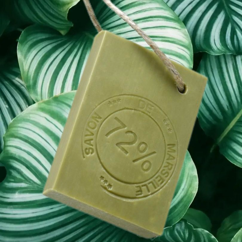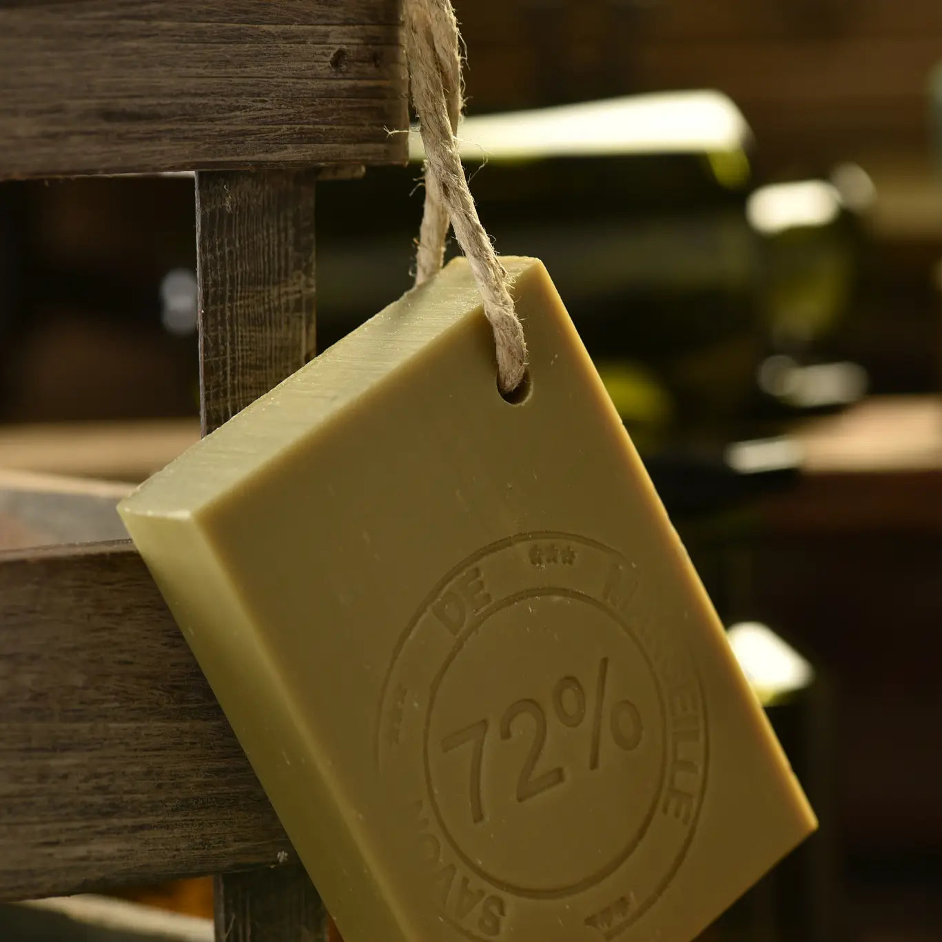Handmade Artisanal Traditional Marseille Olive Oil Soap on a Rope. Crafted with nourishing olive oil, this authentic Marseille soap offers a gentle cleanse while embracing a zero-waste lifestyle. Presented without packaging, it’s a sustainable choice for everyday care.