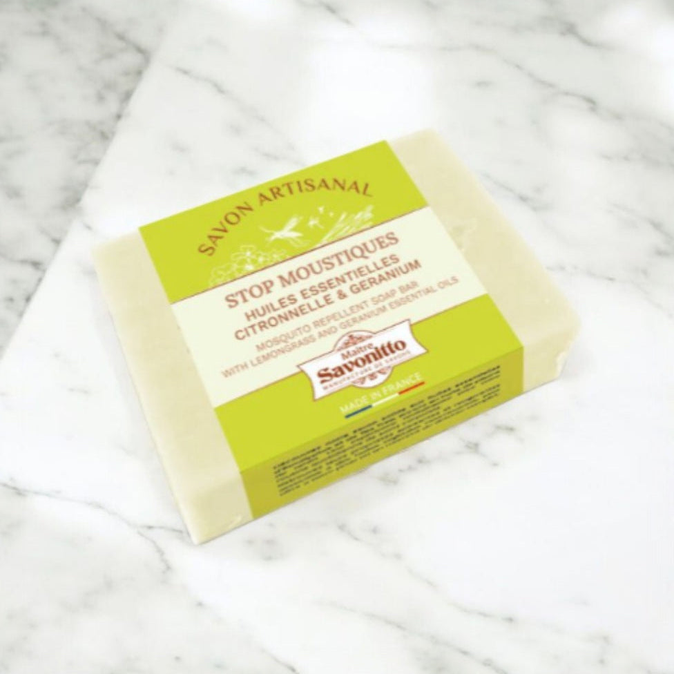 Handmade Mosquite Repellent Soap. Stay fresh and protected with this naturally formulated soap, infused with lemongrass and geranium essential oils known for their mosquito-repelling properties. Enriched with sweet almond oil, it gently cleanses while moisturizing and soothing the skin. 100g