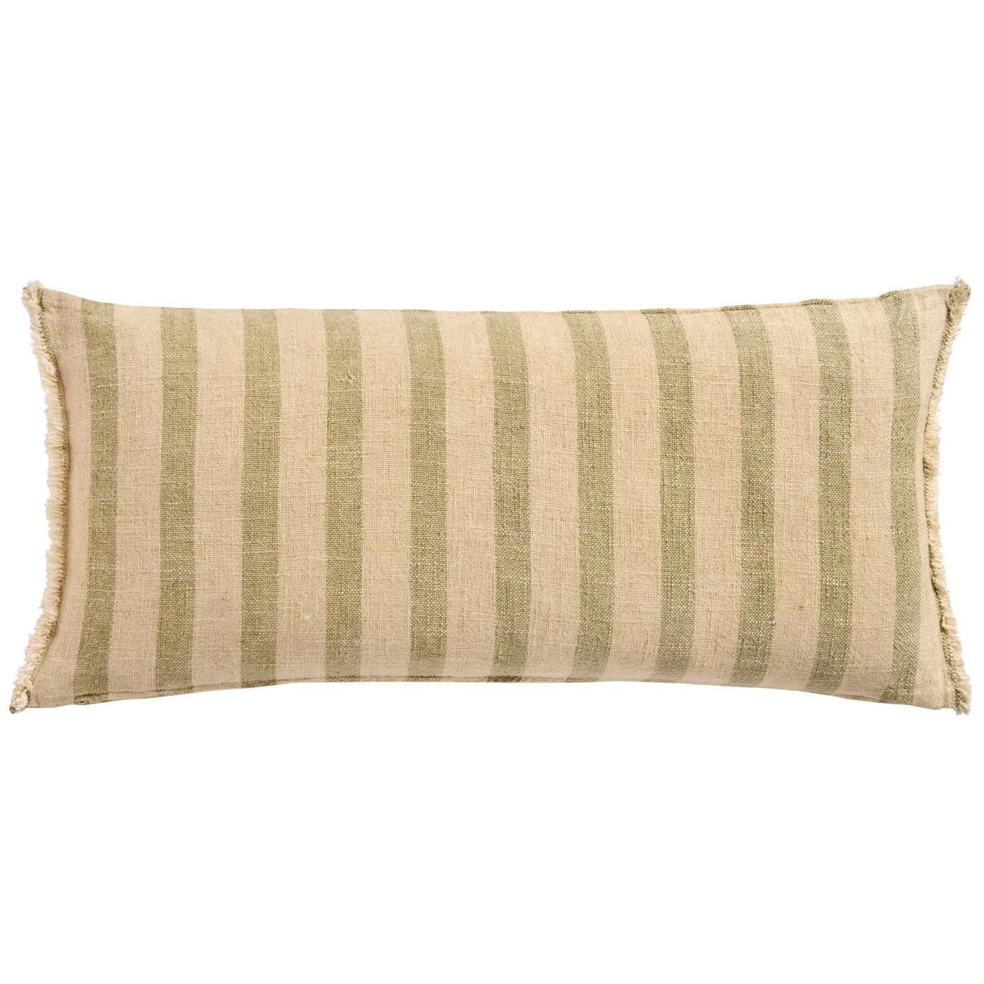Large Rectangle Cushion in Green & Natural Stripes. Elevate your home décor with this beautiful, rectangle, linen blend cushion. Its extra large size makes a real statement on a the sofa, armchair, bench or bed to create a warm and inviting atmosphere. Comes complete with feather inner.
