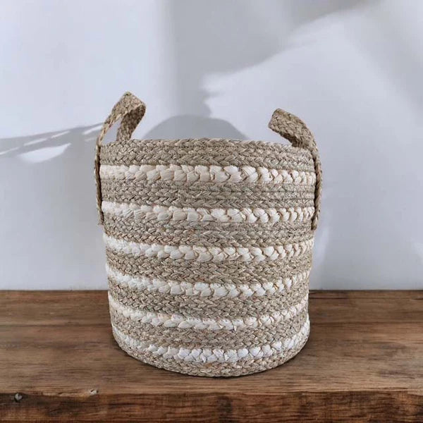 Natural Stripe Basket. This beautifully handcrafted basket is a true testament to timeless artistry and thoughtful craftsmanship. Made from natural, sustainable materials, each basket is meticulously woven by skilled artisans, resulting in a one-of-a-kind piece with charming imperfections and organic texture. Available in three sizes. Sold individually.