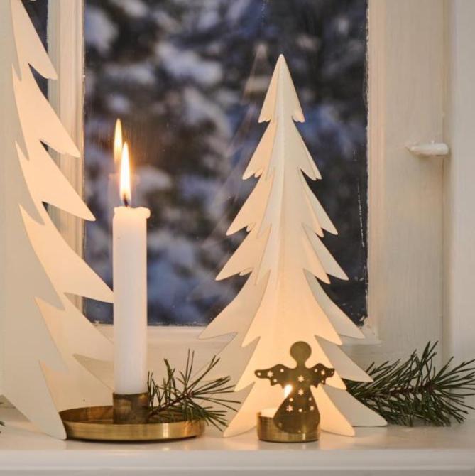 White Paper Standing Trees. White, cut paper, fold out, 3D standing Christmas tree decorations with 6 sides. Simple yet so effective, these trees make a lovely addition to your Christmas decor scheme or Christmas table.