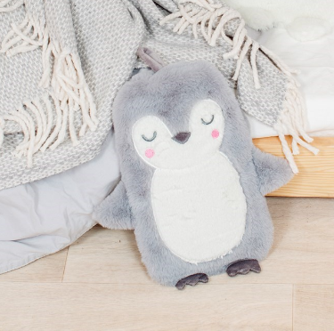 Penguin Hot Water Bottle. This cosy hot water bottle features a soft and cuddly penguin design that’s perfect for snuggling up to. Super soft to the touch with a handy hanging loop, this is a winter warmer essential and makes a lovely gift.