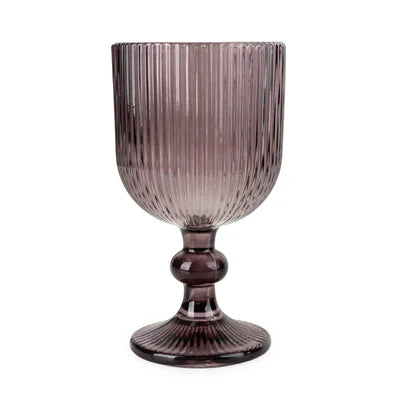 Ridged White Wine Glass - Plum. This Stemmed White Wine Glass in Plum features a striking, deep plum hue that adds a touch of sophistication and flair to your wine service. Its classic stemmed design complements the rich color, making it an elegant choice for enjoying white wine. Perfect for adding a distinctive, modern touch to your table setting or wine collection.