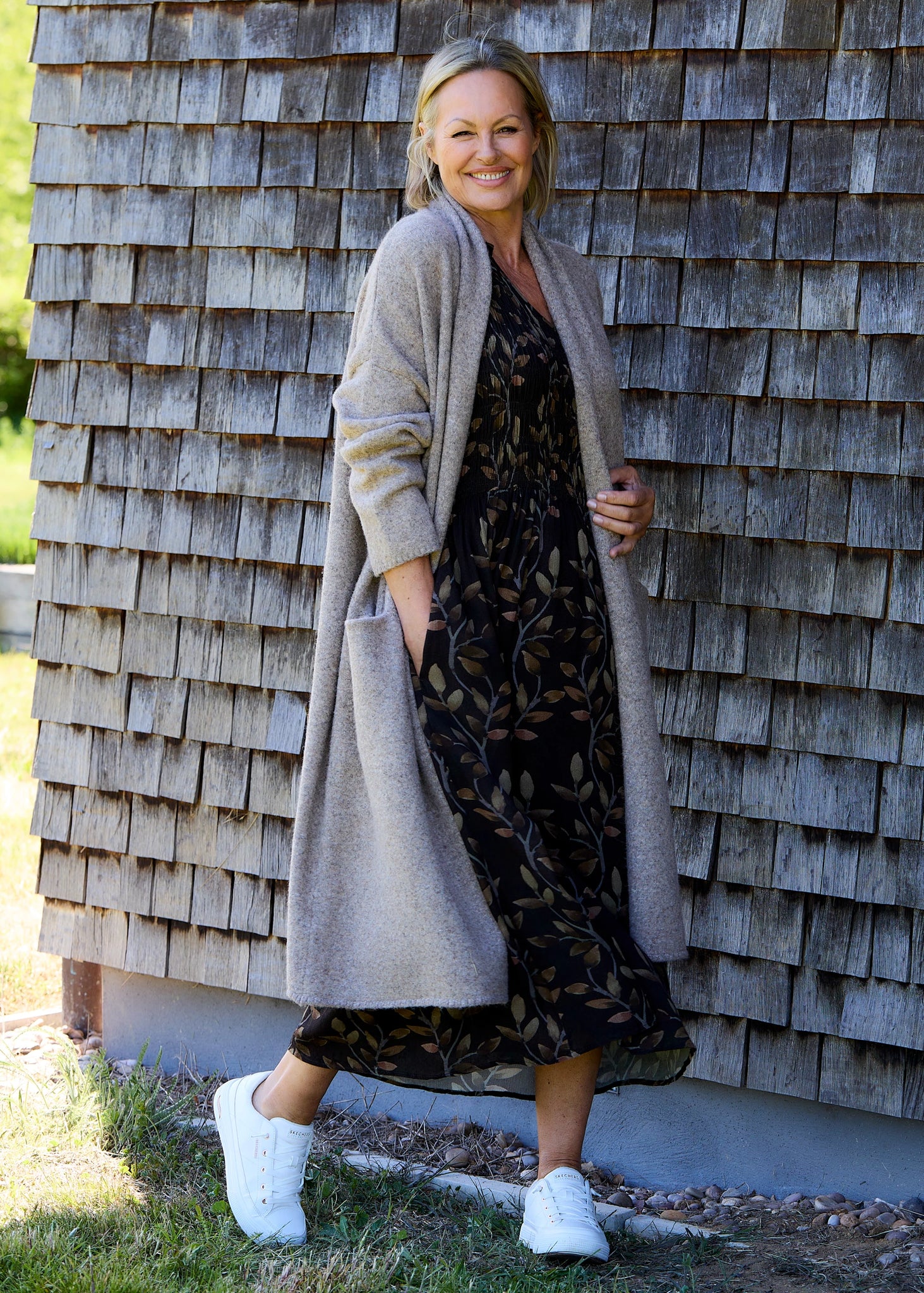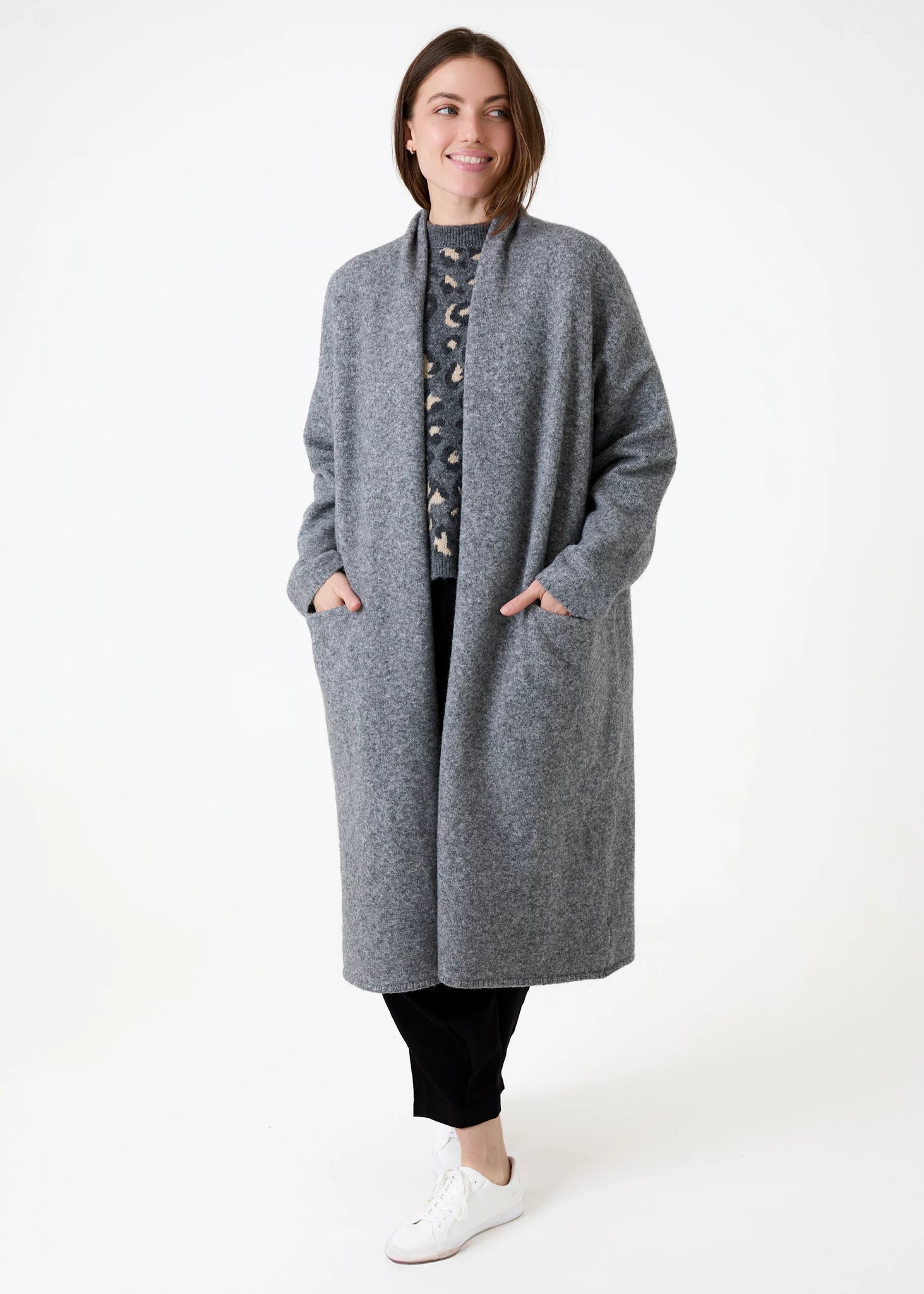 Soft knit roll collar coatigan. Add an element of luxury to your wardrobe this season with our longline cardigan/coatigan. Designed for a relaxed and flattering silhouette, this style features pockets and a roll collar; the perfect throw-on layer for everyday wear. Available in a range of colours.