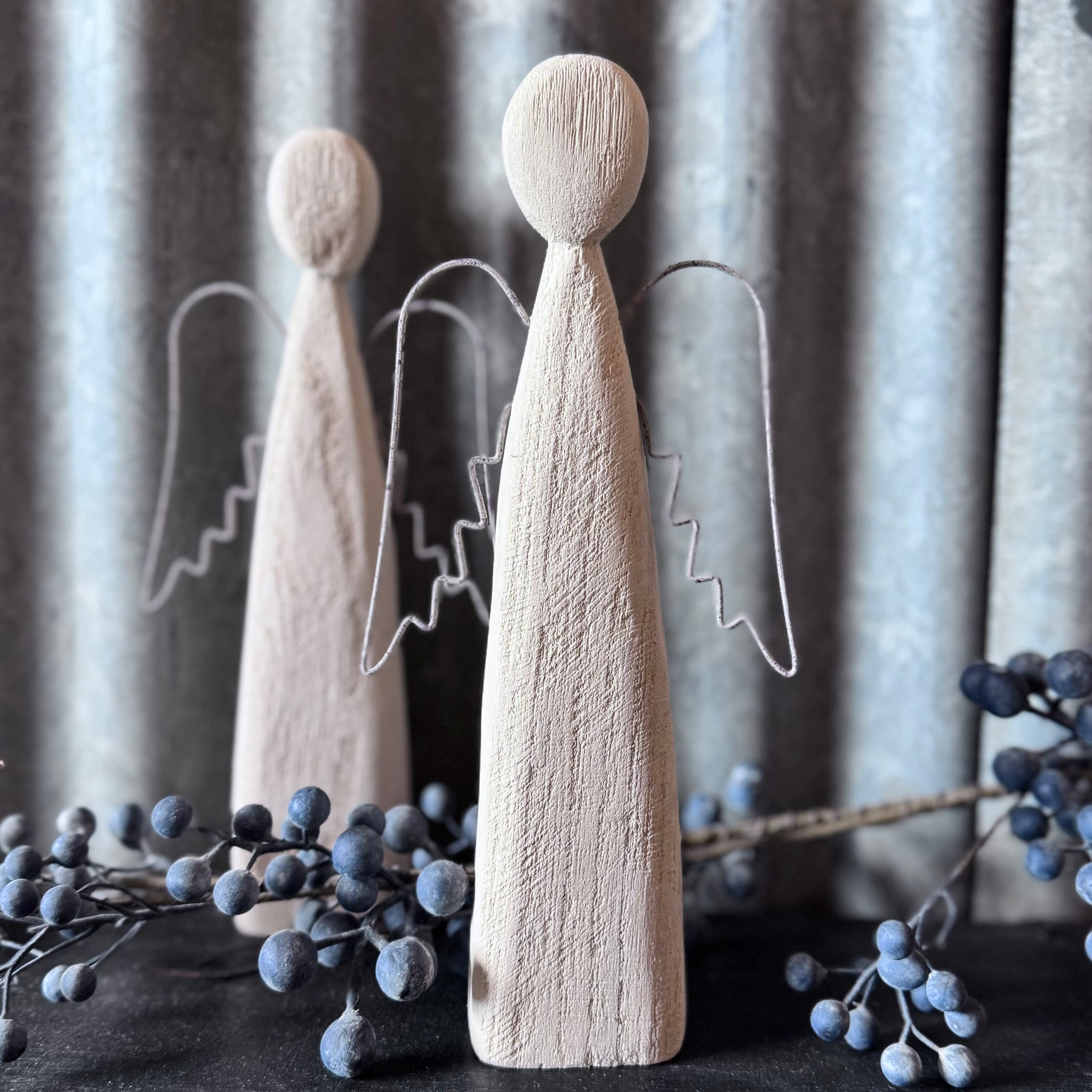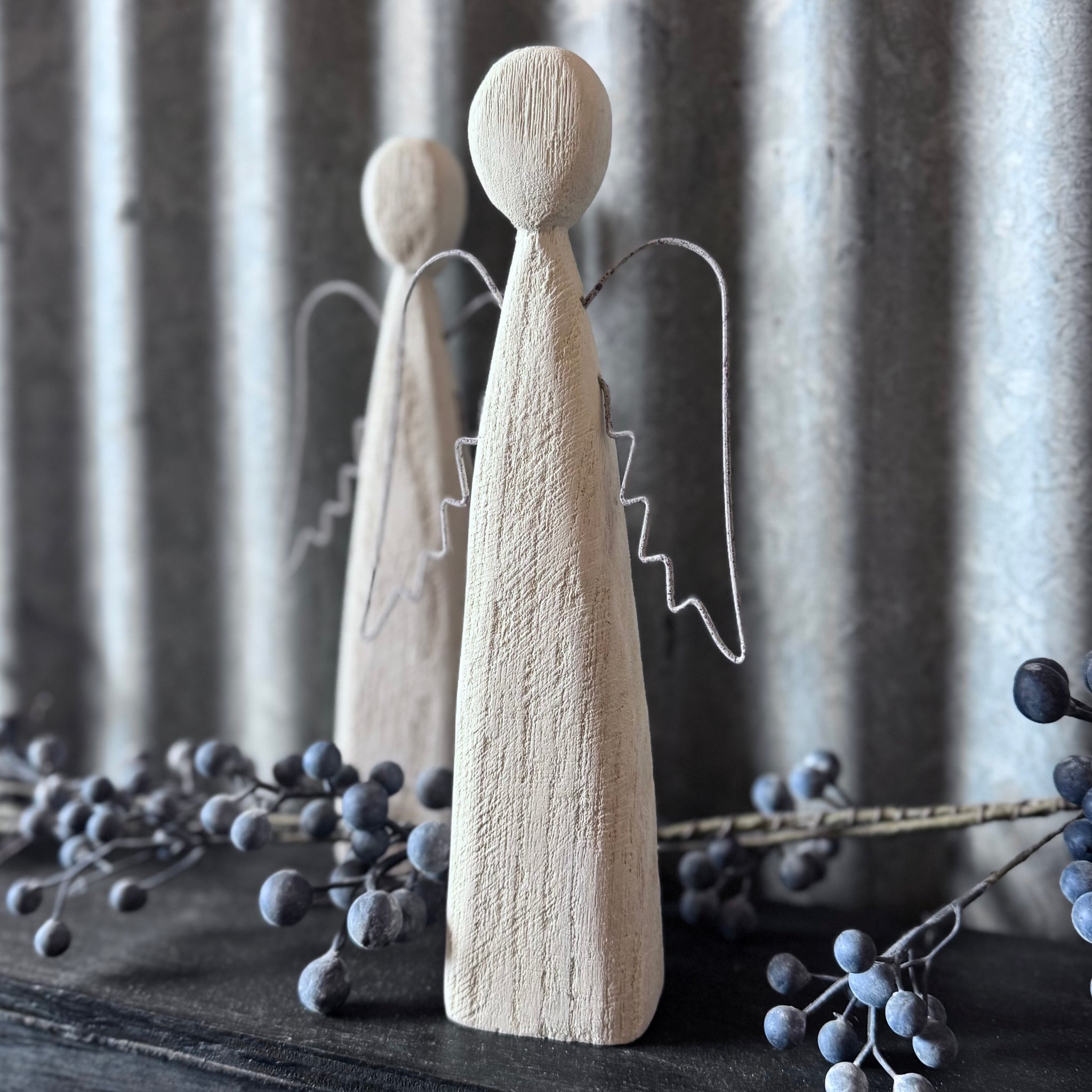 Whitewashed Rustic Angel Decoration. This weathered white angel radiates peaceful presence in your Christmas display, or as a guardian angel all year round.