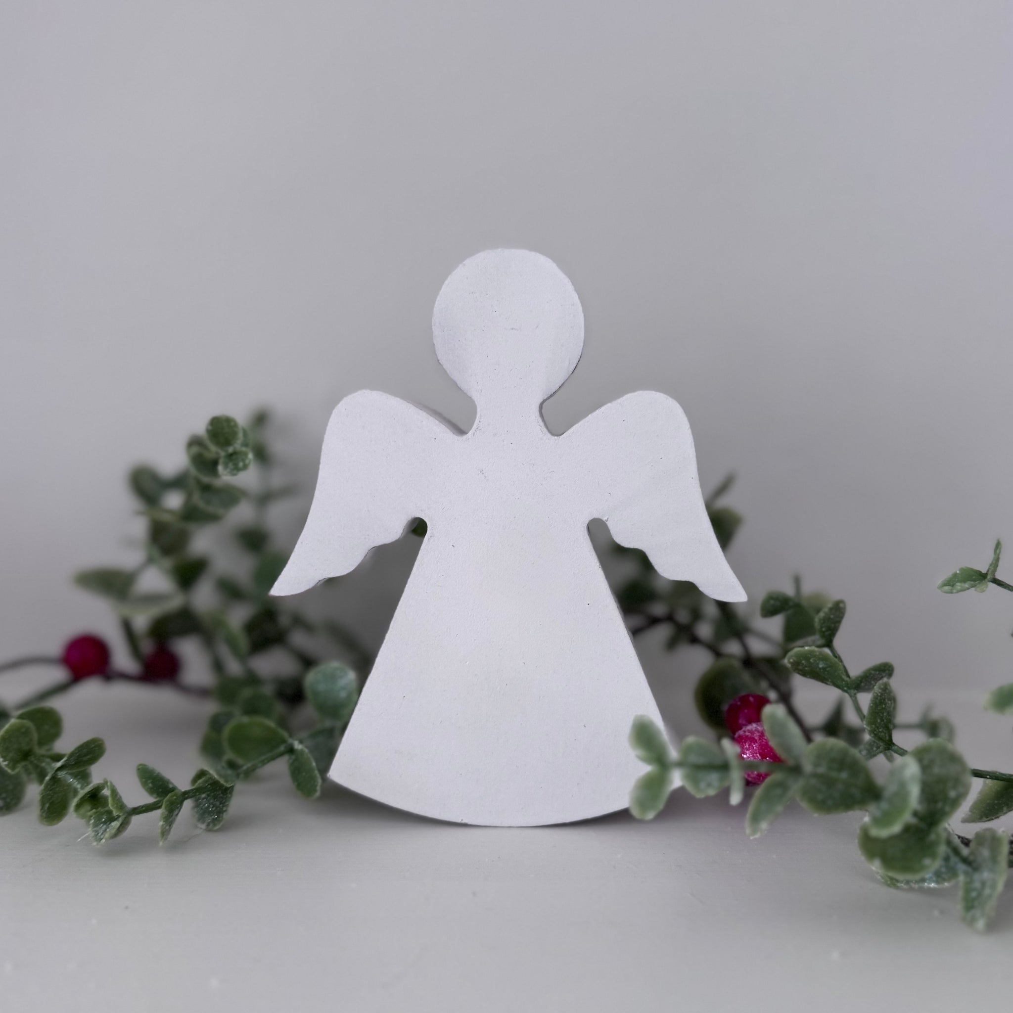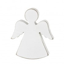 White Wooden Standing Angel Christmas Decoration. This simple, rustic angel is a perfect festive decoration. Freestanding. Crafted from MDF.
