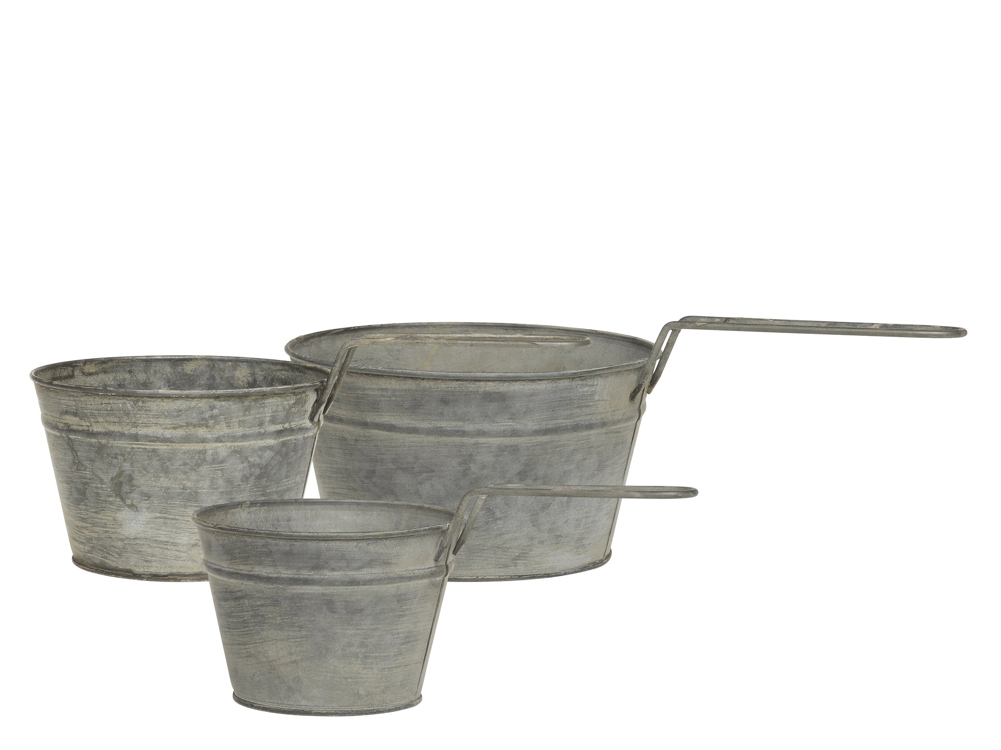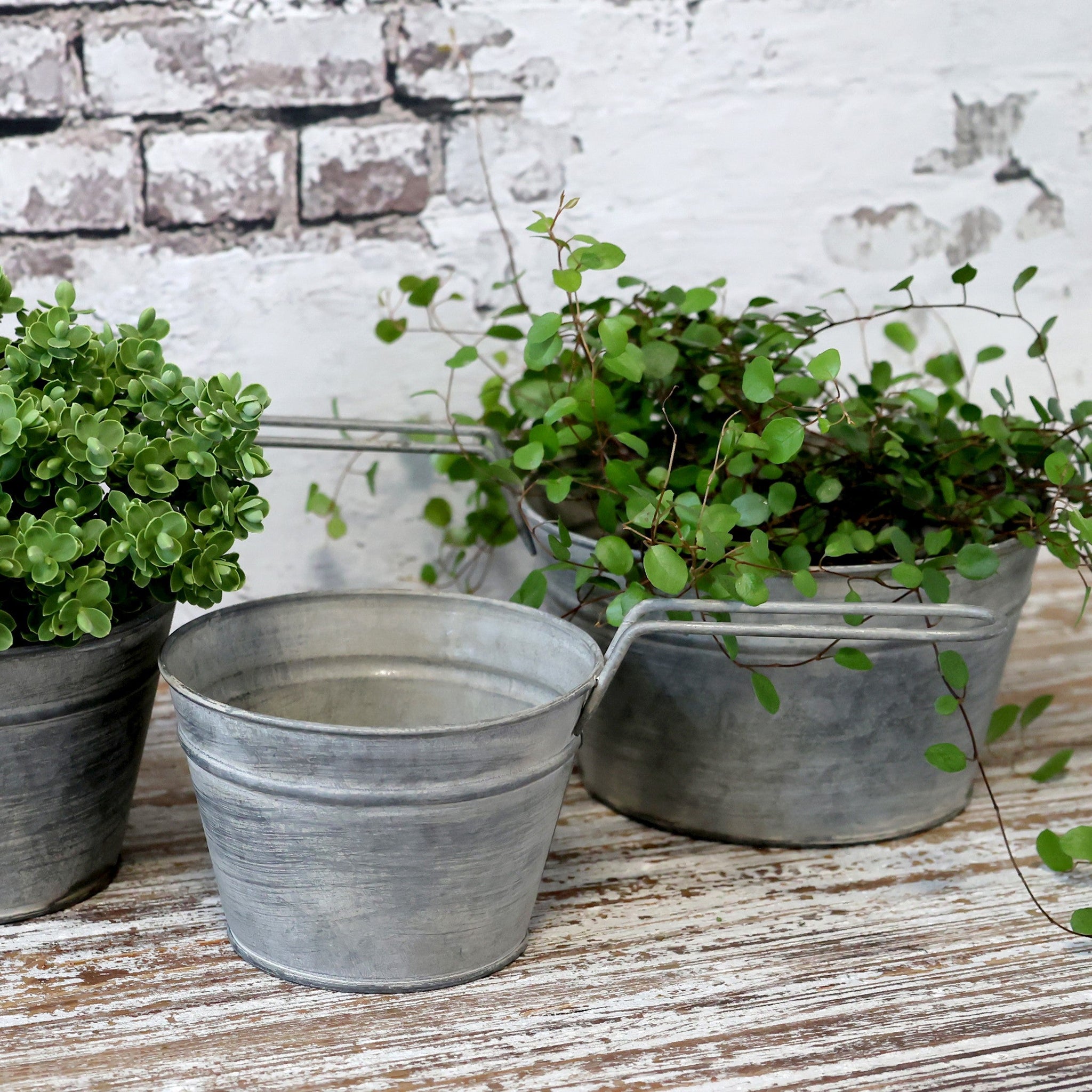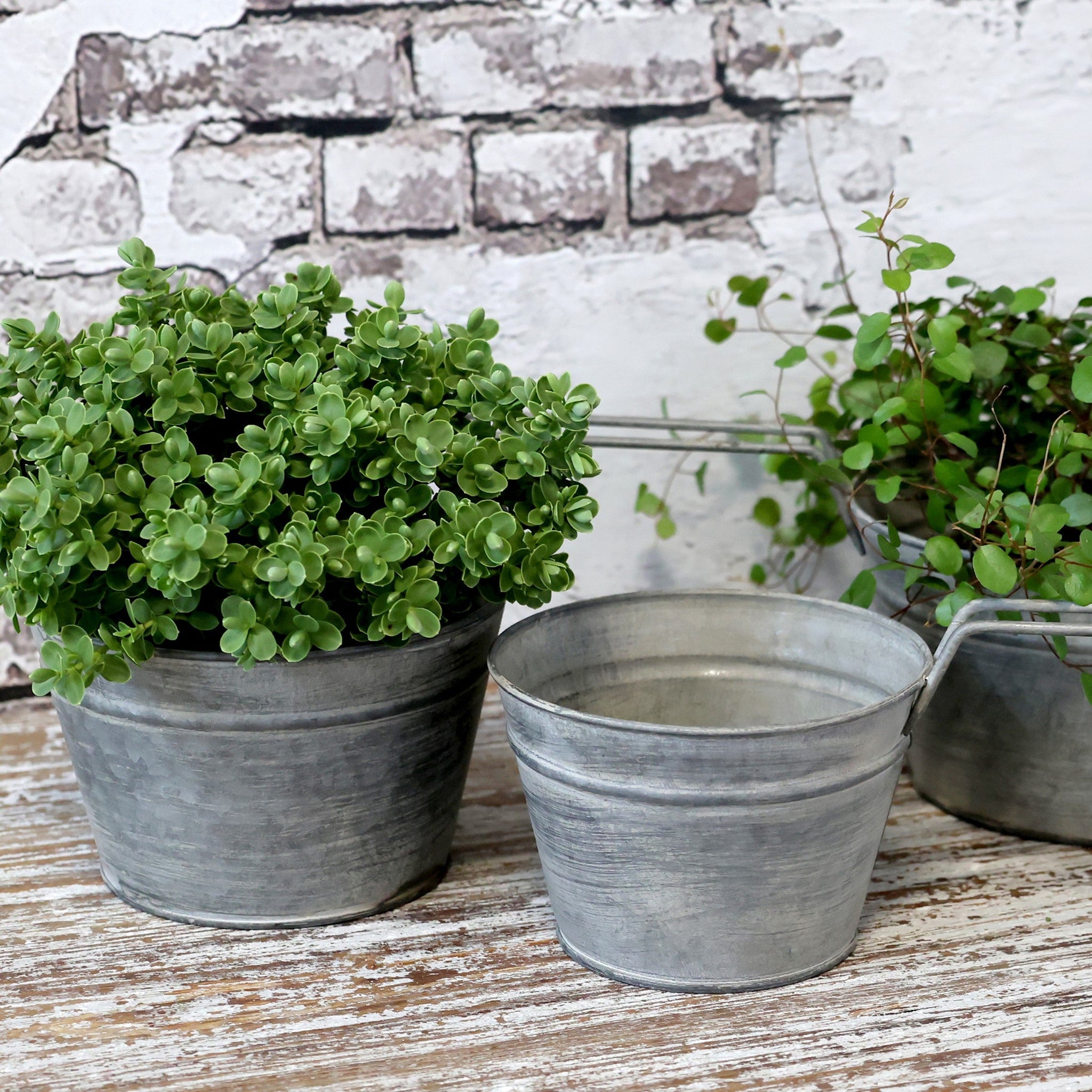 Medium Zinc Flower Pot with Handle. Crafted from zinc with a dusty, washed finish, this vintage style pot is the perfect rustic container for your plants or can be used for general storage.